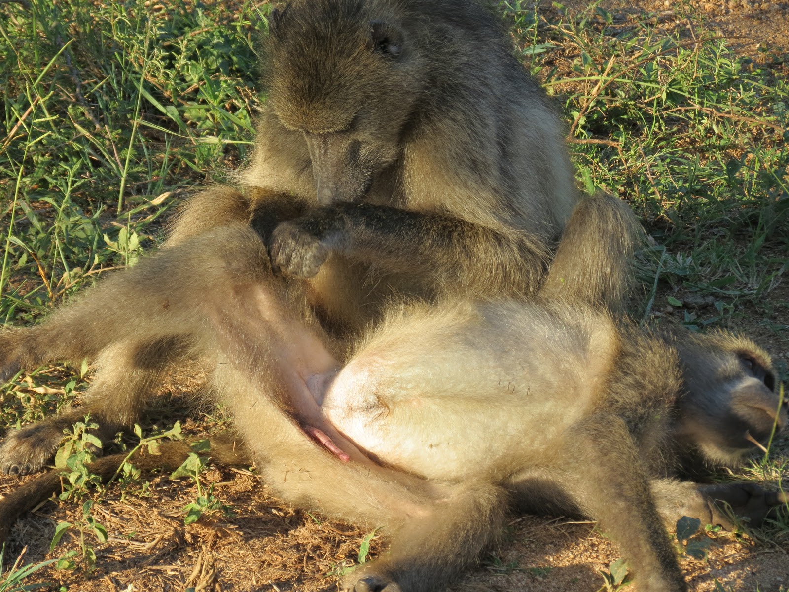I went out on my last safari tonight in Kruger Park. Both Brian and I were desperate to see lions but we never saw any. We had a toilet break at Skukuza again and this time more of the group walked down to the river where the hippo’s still were. More exciting than that Giraffe came down to the river to drink. One of the funniest things we saw was a female Baboon grooming a male. Every time she got a bit close to bits he would get an erection. What made it funnier is that he was spread eagle on the floor.